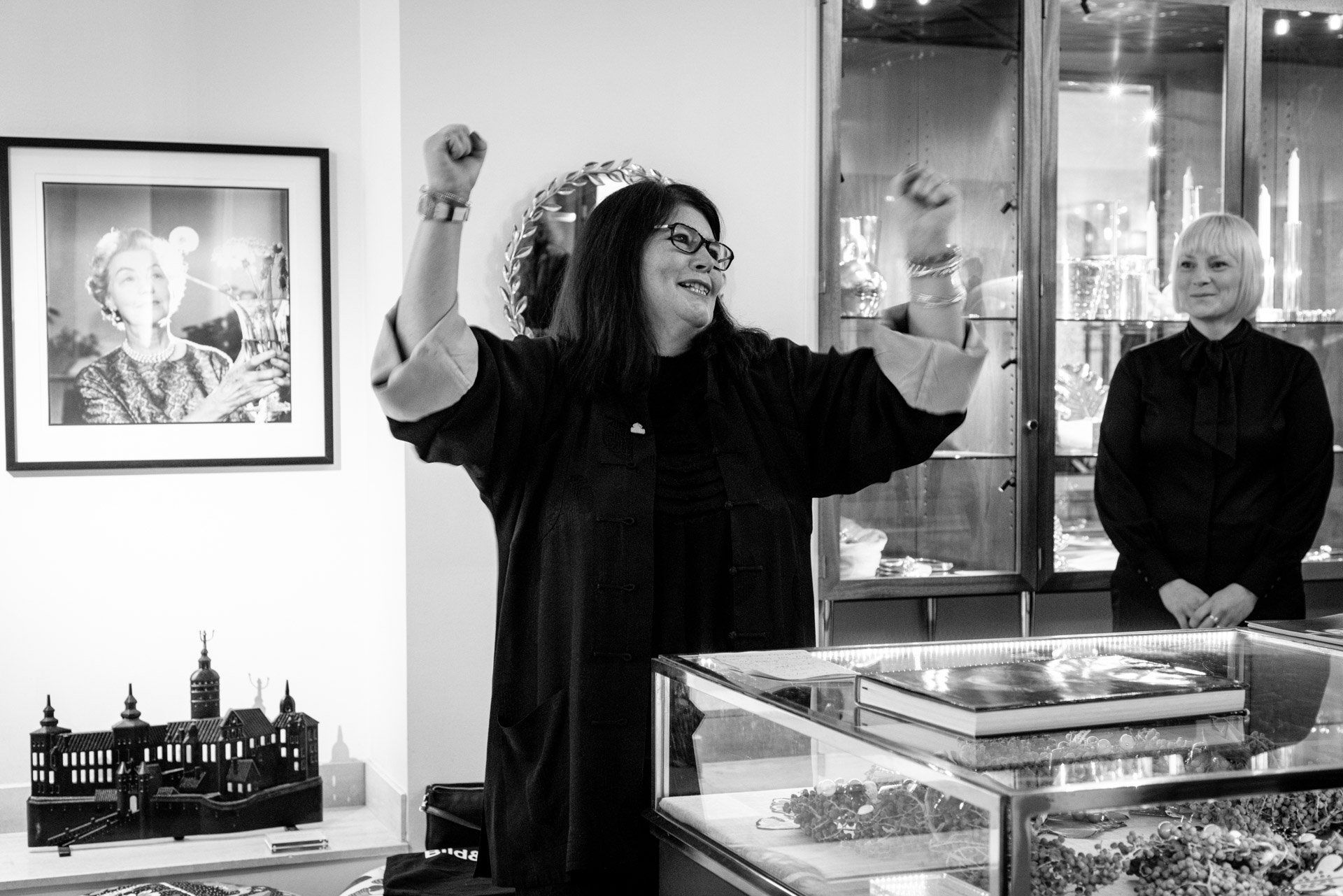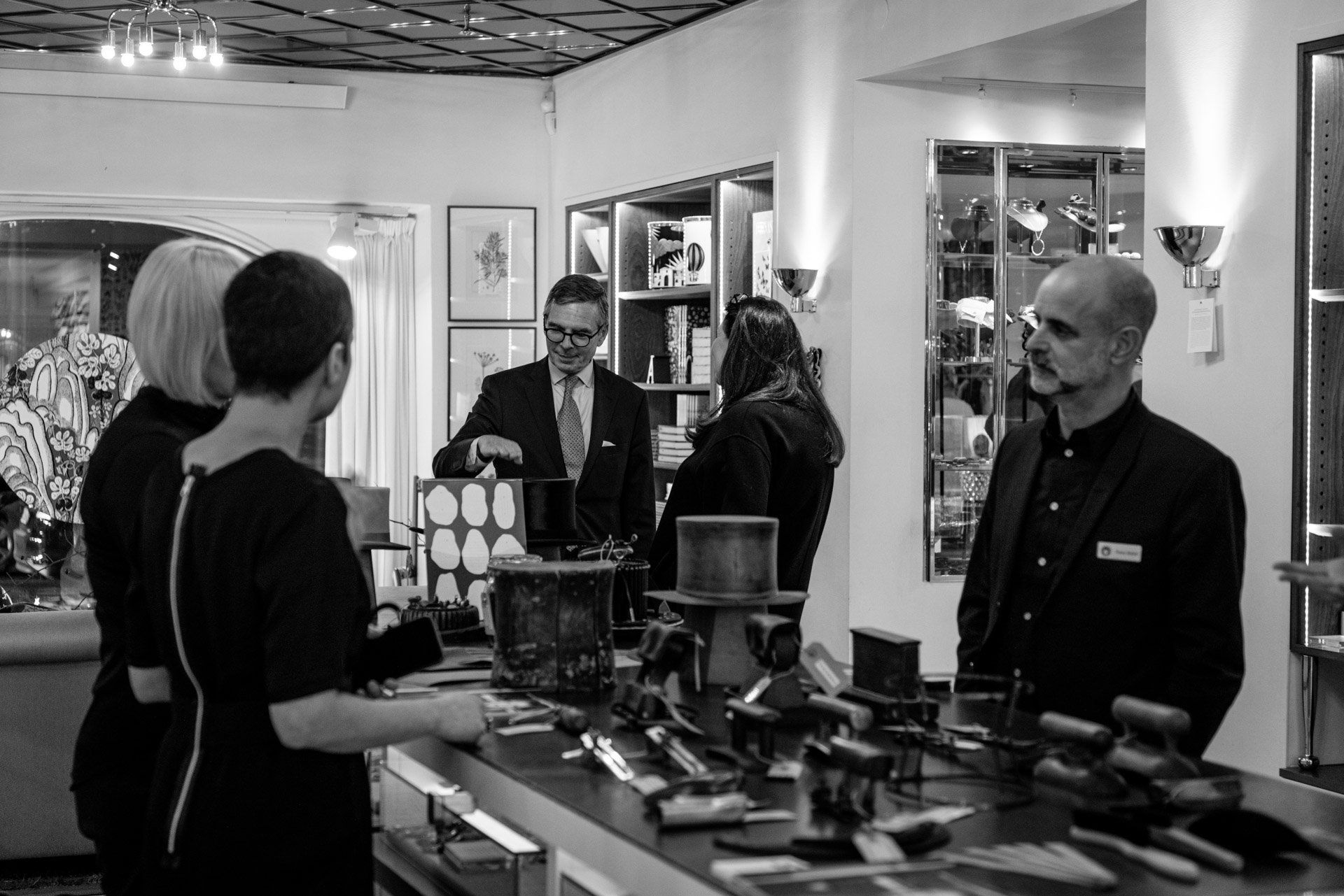 Den 11 november 2021 utdelades för första gången Kungl. Hovleverantörsföreningens hantverksstipendium. Stipendiet gick till hattmakarmästare och modistmästare Lisa Franzén, och sammankomsten ägde rum i generöst värdskap av hovleverantören Svenskt Tenn i Stockholm. Klicka på bilden för större storlek. Foto: Yanan Li. Text: Maria Gunnarsson.